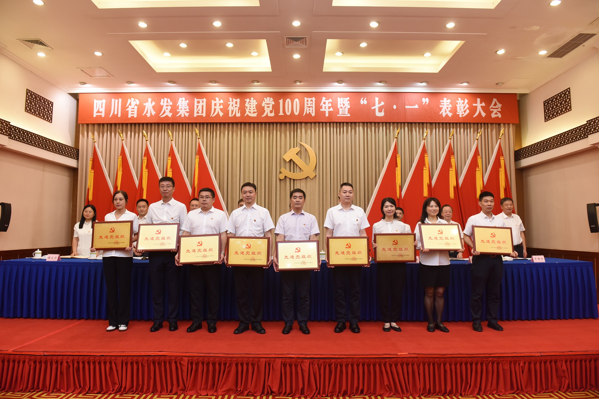 為隆重慶祝中國共產(chǎn)黨成立100周年,回顧黨的光輝歷程,激勵(lì)各級(jí)黨組織和廣大黨員牢記初心使命,服務(wù)集團(tuán)高質(zhì)量發(fā)展,6月25日上午,四川省水利發(fā)展集團(tuán)有限公司在成都召開慶祝建黨100周年暨“七·一”表彰大會(huì)。集團(tuán)黨委書記、董事長鐘杰同志及集團(tuán)領(lǐng)導(dǎo)班子成員出席會(huì)議。集團(tuán)下屬企業(yè)黨委班子成員,受集團(tuán)表彰的優(yōu)秀共產(chǎn)黨員、優(yōu)秀黨務(wù)工作者、先進(jìn)黨組織代表,集體總部全體黨員參加會(huì)議。集團(tuán)黨委委員、紀(jì)委書記吳軍同志主持會(huì)議。
