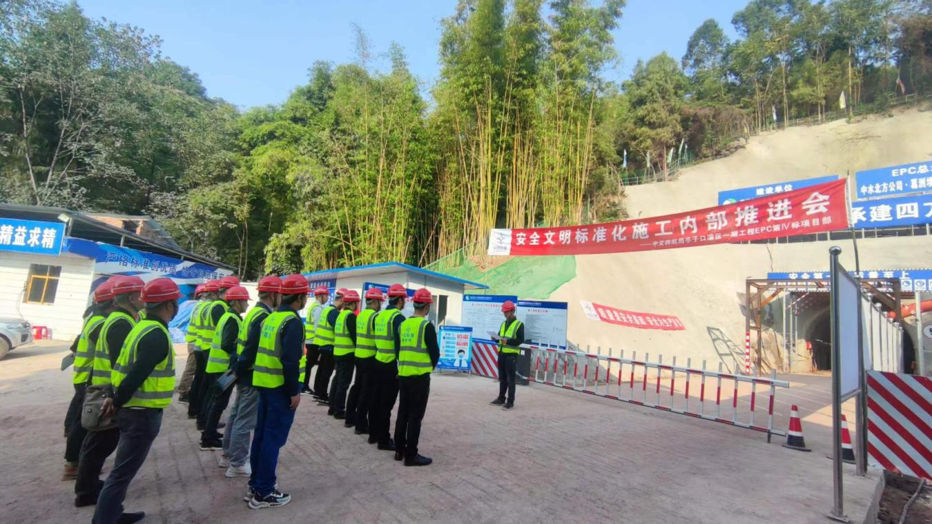 為認(rèn)真貫徹落實(shí)集團(tuán)關(guān)于水利工程建設(shè)安全文明綠色施工標(biāo)準(zhǔn)化管理有關(guān)要求,著力提升亭子口灌區(qū)一期工程施工安全標(biāo)準(zhǔn)化建設(shè)水平。10月22日上午,亭子口灌區(qū)一期工程中交四航局施工項(xiàng)目部在四方寨支洞開(kāi)展安全文明標(biāo)準(zhǔn)化施工內(nèi)部推進(jìn)會(huì),中交四航局施工項(xiàng)目部領(lǐng)導(dǎo)班子、安全管理人員、各施工隊(duì)伍負(fù)責(zé)人共計(jì)20人參加本次現(xiàn)場(chǎng)會(huì)議。