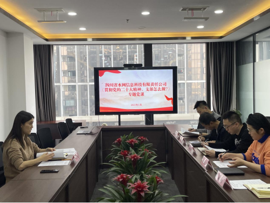 1月31日,投資公司下屬水網(wǎng)科技公司黨支部為深入貫徹落實黨的二十大會議精神,組織專題黨課教育活動,結(jié)合經(jīng)營發(fā)展實際,開年即謀劃公司全年重點工作。黨支部書記馬璐以《貫徹黨的二十大精神,支部怎么做?》為主題,圍繞黨的二十大報告和2023年全國水利工作會議的精神為公司全體黨員職工講授了專題黨課。