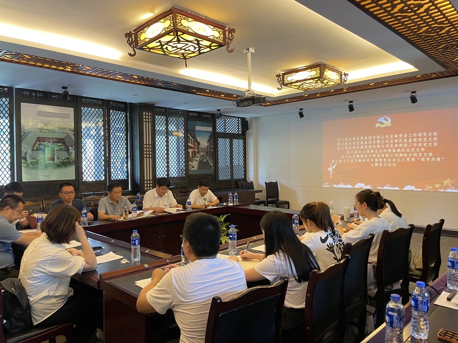 為深入學(xué)習(xí)貫徹習(xí)近平新時(shí)代中國特色社會主義思想主題教育要求,抓實(shí)抓細(xì)“我為群眾辦實(shí)事”實(shí)踐活動,鞏固“兩去兩服務(wù)”作風(fēng)整頓成果,進(jìn)一步增強(qiáng)集團(tuán)各基層黨支部圍繞主責(zé)主業(yè),服務(wù)基層一線意識,不斷提升總部各部門與下屬企業(yè)、與外部友好單位之間溝通協(xié)作效率。7月21日,集團(tuán)總部紀(jì)檢監(jiān)察部黨支部聯(lián)合設(shè)計(jì)公司測繪分院黨支部開展了以“學(xué)思想、強(qiáng)黨性、重實(shí)踐、建新功”為主題的聯(lián)學(xué)共建主題黨日活動。集團(tuán)黨委工作部黨支部、群團(tuán)工作部黨支部、四川省水??傉军h支部特邀參加。?