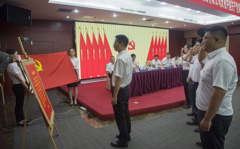 會上,舉行了新黨員入黨宣誓儀式。公司黨委副書記、董事王君領(lǐng)誓,5名新黨員面對黨旗,莊嚴(yán)宣誓。聲聲誓言鏗鏘有力,句句承諾擲地有聲的表達(dá)了不忘初心、牢記使命的堅定信念。
