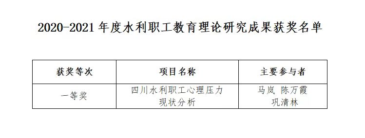 10月26日,中國水利教育協(xié)會在官網(wǎng)發(fā)布了第二屆水利職工創(chuàng)新成果評選結(jié)果和2020-2021年度全國水利職工教育理論研究成果評選結(jié)果的公告,集團(tuán)多名職工在評選中獲獎。