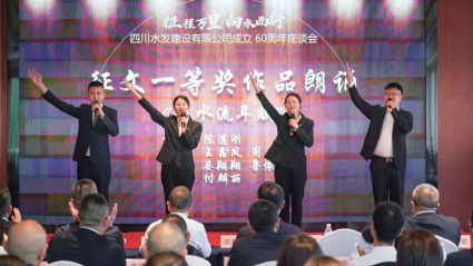 會(huì)上,發(fā)布了建設(shè)公司60周年大事記《征程》、畫(huà)冊(cè)《向水而行》,并對(duì)建設(shè)公司企業(yè)文化品牌進(jìn)行釋義,播放企業(yè)宣傳片《水利鐵軍 匠筑不凡》,觀看了舞蹈《筑夢(mèng)》視頻。同時(shí),為建設(shè)公司成立 60 周年主題征文和書(shū)畫(huà)攝影比賽活動(dòng)優(yōu)秀組織獎(jiǎng)獲獎(jiǎng)單位及一等獎(jiǎng)獲得者頒發(fā)證書(shū),并對(duì)詩(shī)歌類一等獎(jiǎng)?wù)魑淖髌愤M(jìn)行了朗誦。