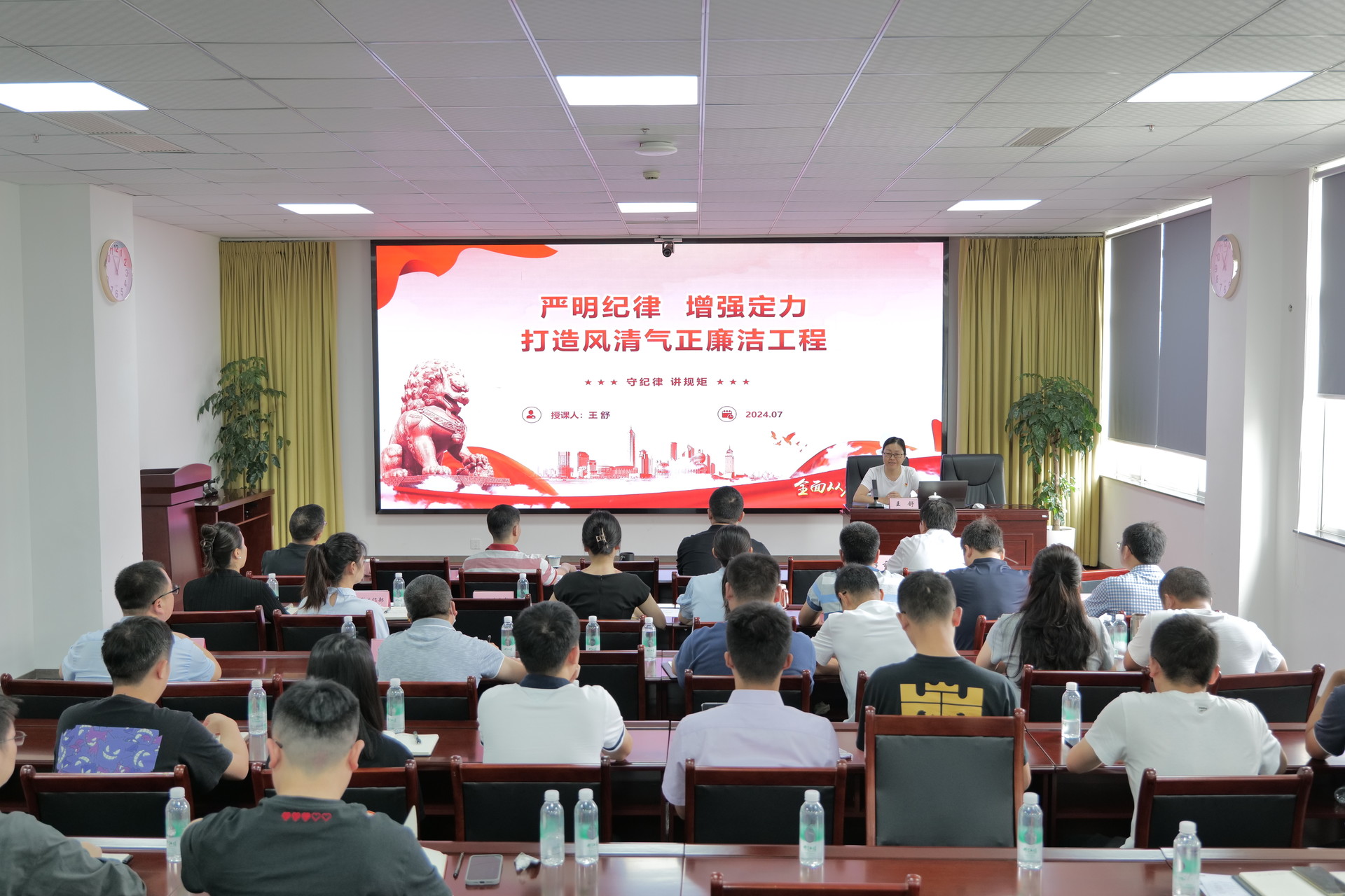7月4日,集團副總經(jīng)理王舒到引大濟岷公司以《嚴明紀律增強定力打造風清氣正廉潔工程》為題從理論學習錘煉黨性、嚴明紀律錘煉作風、黨史中汲取力量三個方面,結(jié)合行業(yè)、公司特點,為公司全體干部職工上了一堂生動深刻的專題黨課。