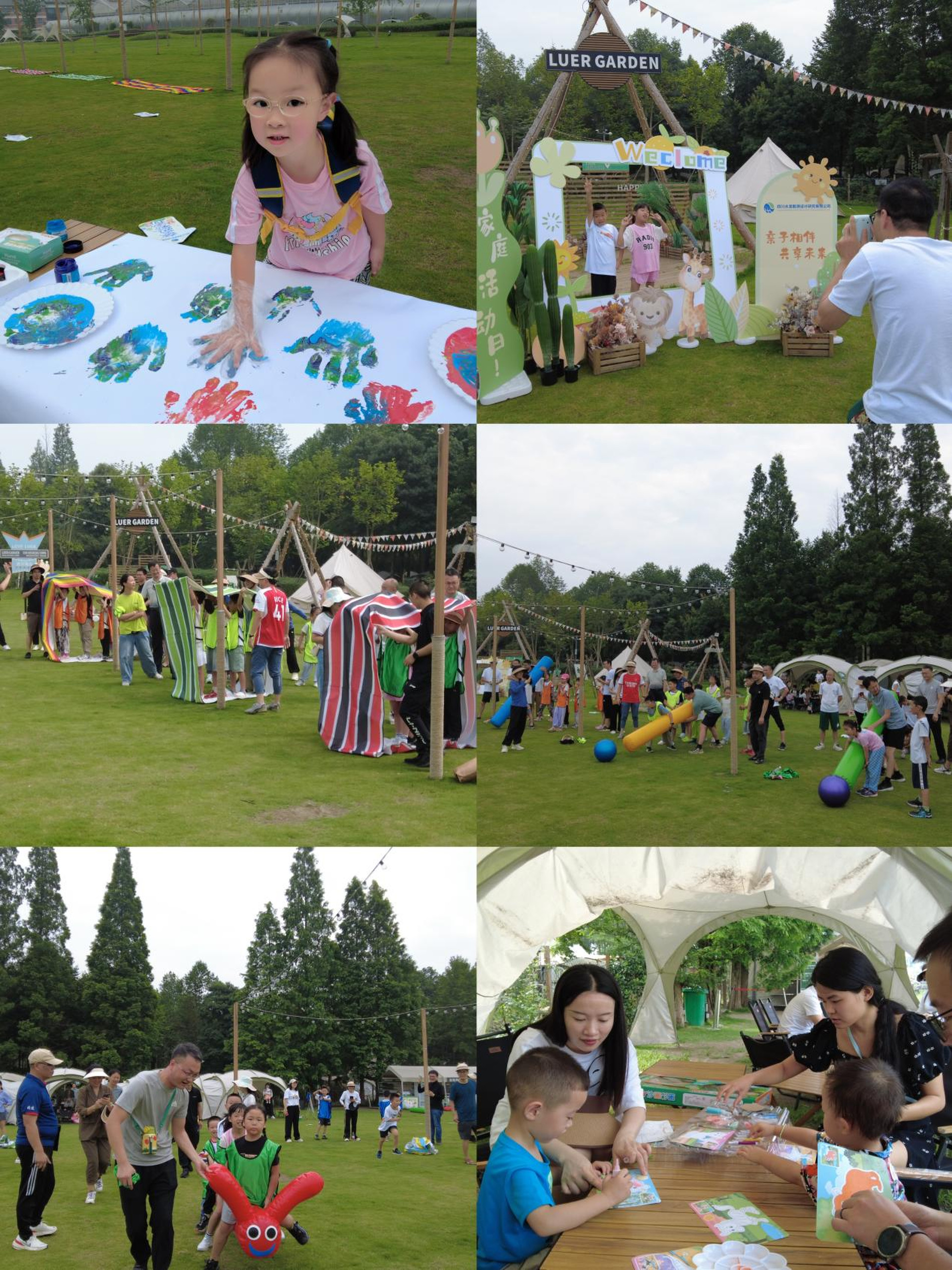 “手印簽到”、“全家福打卡”、“車輪滾滾”、“趕豬進(jìn)圈”、“毛毛蟲大戰(zhàn)”、“DIY繪畫”等趣味游戲?qū)⒋舜位顒?dòng)推向了高潮,通過親子和團(tuán)隊(duì)的合作,大家共同完成游戲,不僅鍛煉小朋友的團(tuán)結(jié)協(xié)作能力,也增進(jìn)了家庭親子間的默契和感情。