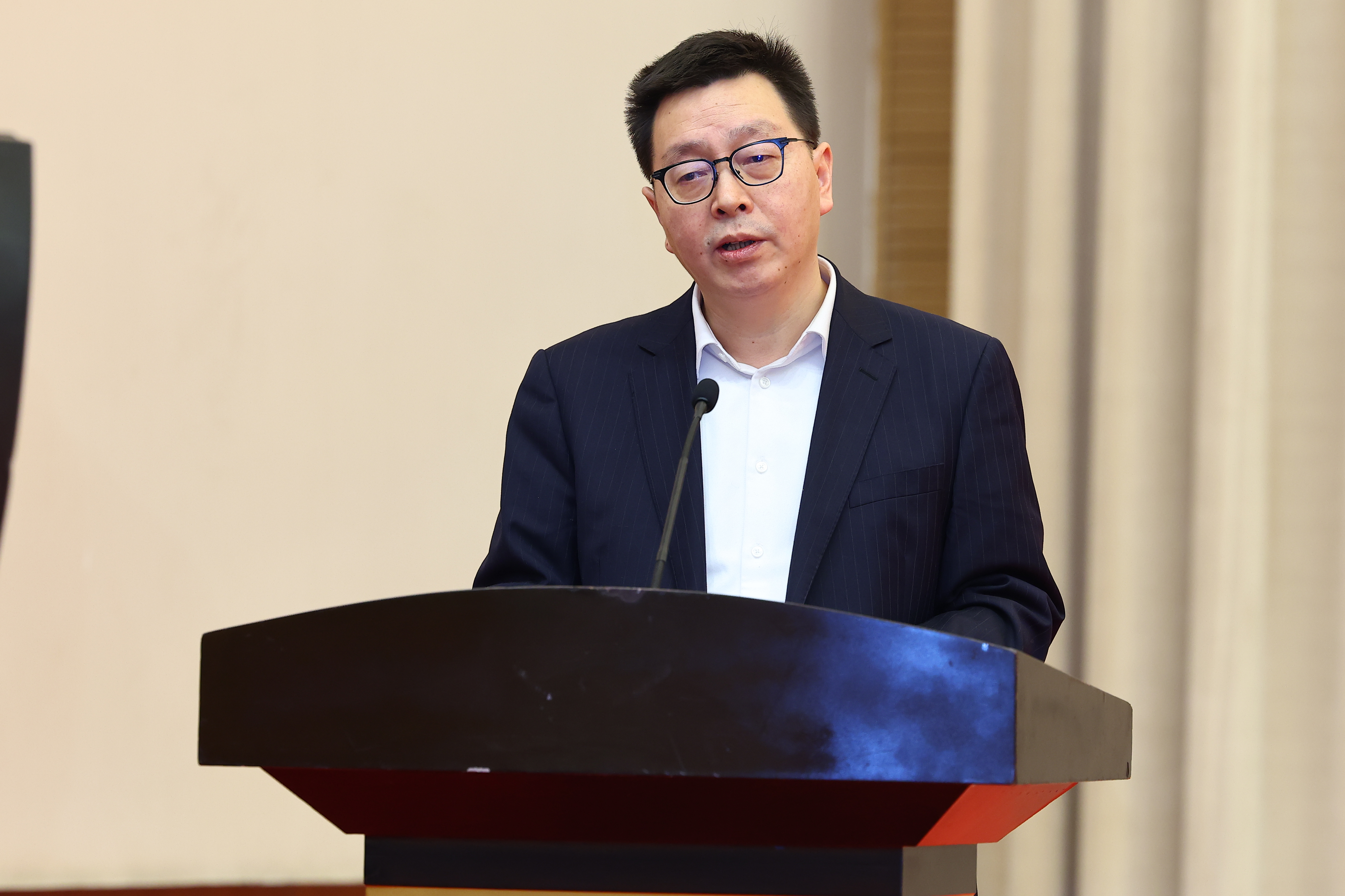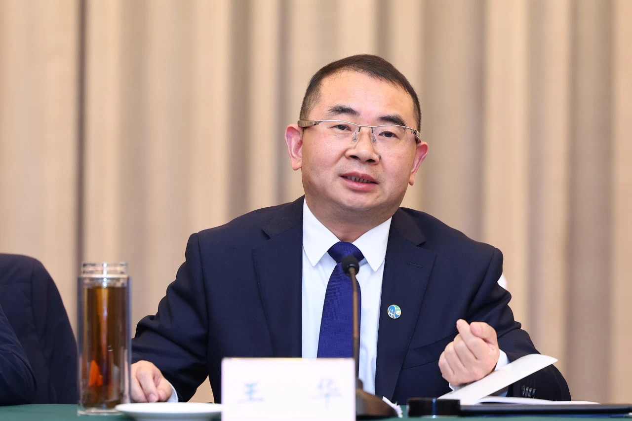 集團(tuán)黨委書(shū)記、董事長(zhǎng)王華向參會(huì)嘉賓介紹集團(tuán)科技創(chuàng)新工作-1