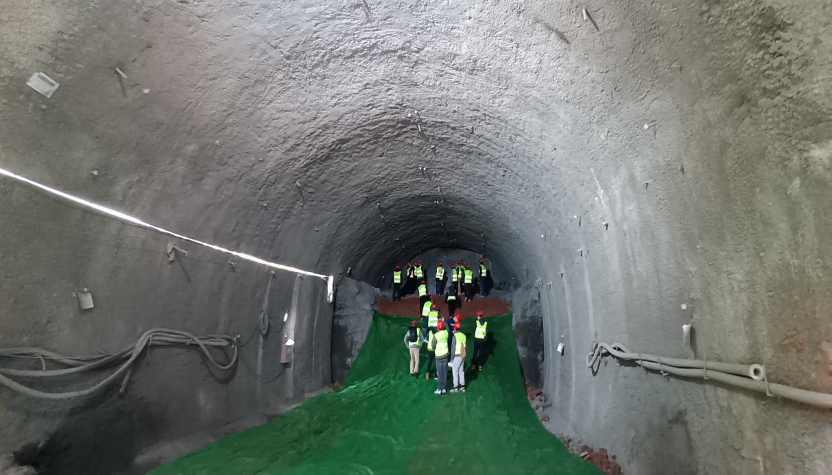全體人員首先在現(xiàn)場施工人員的帶領(lǐng)下參觀成都軌道交通13號線一期工程土建7工區(qū)三圣花鄉(xiāng)站施工現(xiàn)場,就全國最大的大跨度中庭無柱弧形拱頂車站施工(幸福梅林站)、淺埋大直徑膨脹性黏土巖隧洞施工、初期支護(hù)、道路防沉降、220KV高壓線下安全防控措施等技術(shù)進(jìn)行了現(xiàn)場交流。